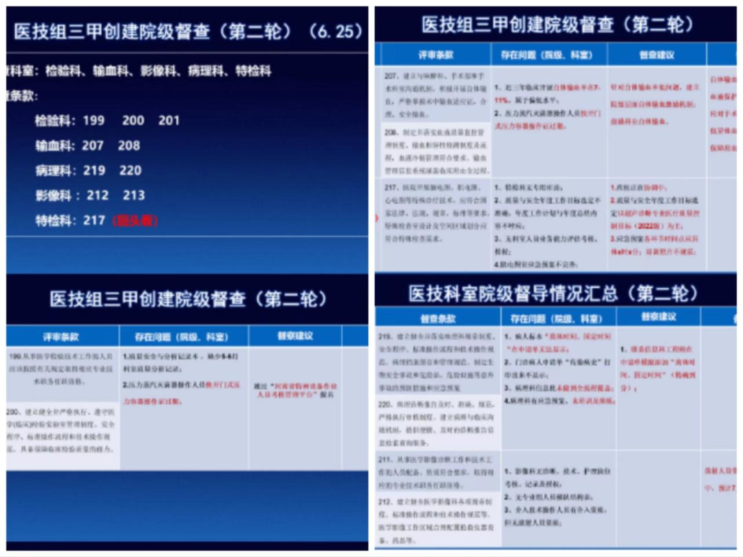 針對第一輪督查發(fā)現(xiàn)的問題,每個科室針對問題,積極完善。病理科在工作人員少、病理實驗室(院內、學校實驗室)需要重新改造的情況下,科室人員在負責人趙路的帶領下,加班加點制作、完善三甲創(chuàng)建相關資料。 影像科在三位主任的帶領下,發(fā)揮全科、全員優(yōu)勢,每一項任務布置下去,責任到人,在規(guī)定時間內按時完成。輸血科針對評審條款要求,結合輸血自身特點,完善、優(yōu)化輸血管理體系文件,特別是制作的輸血科儀器臺賬,定點、定時、定人,更好實現(xiàn)了實驗室儀器設備的管理、跟蹤,已作為儀器臺賬管理模版,在全院推廣使用。檢驗科針對評審條款、依據(jù)iso15189實驗室建設要求,與科室質量與安全管理組成員 簽訂責任承諾書,形成“人人關注質量安全,人人參與質量安全”的良好氛圍。
