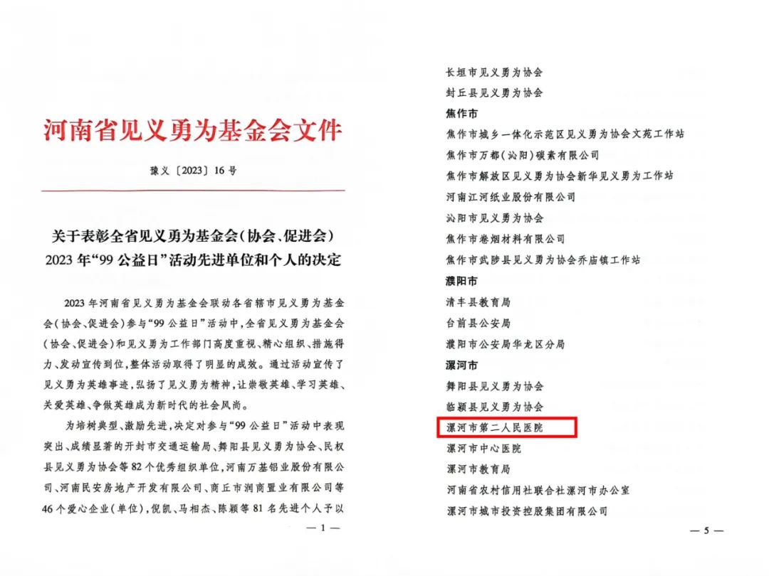 市二院榮獲全省2023年“99公益日”活動先進(jìn)單位