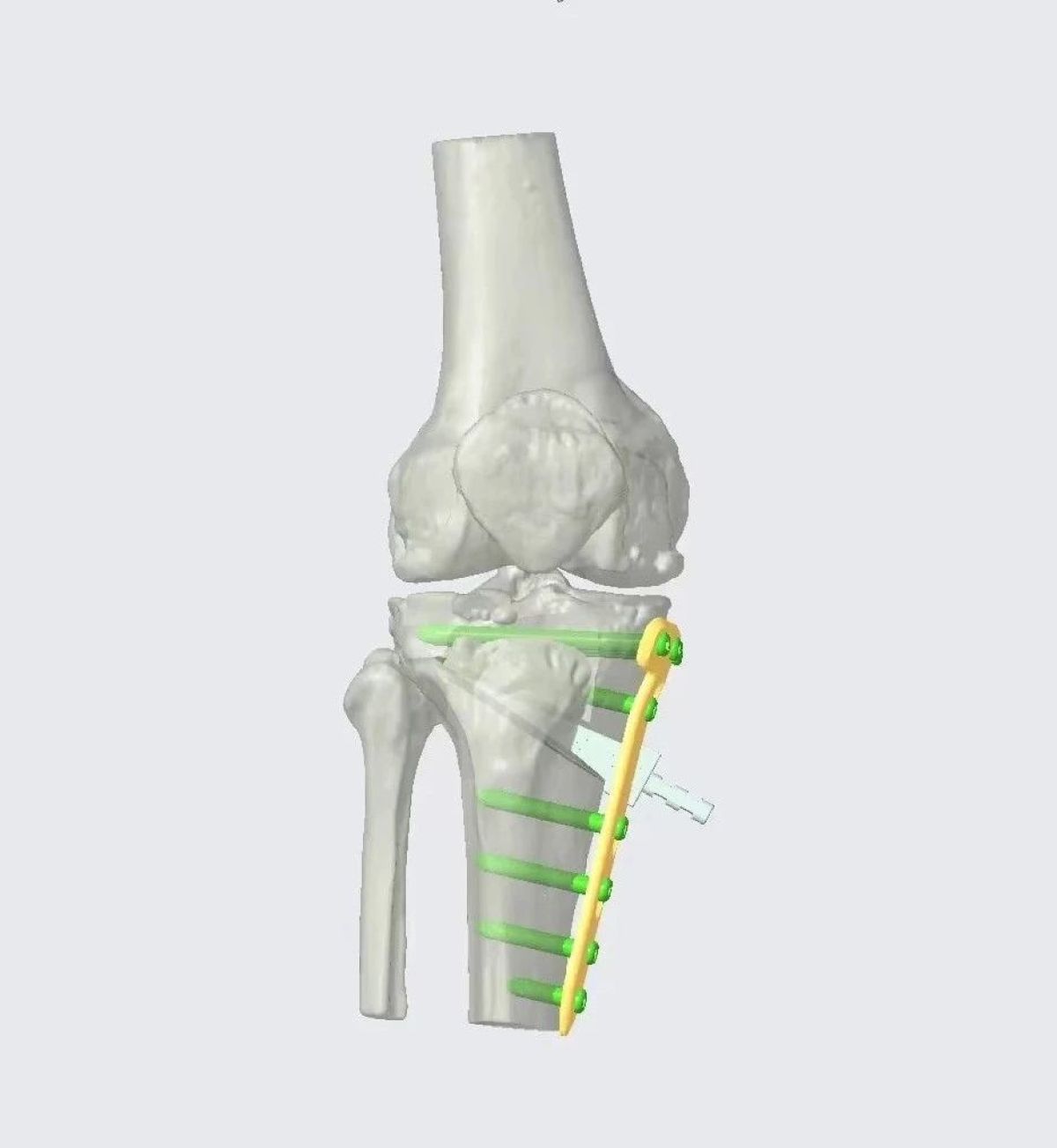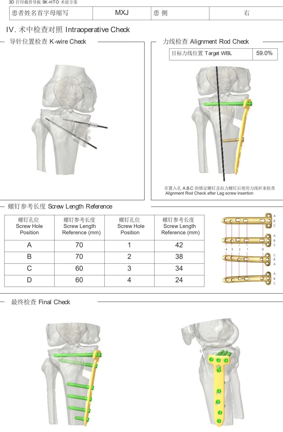 鋼板位置、螺釘位置及長度均可通過術(shù)前規(guī)劃計算,術(shù)中通過定位操作,基本與術(shù)前規(guī)劃一致,手術(shù)快速高效完成,外側(cè)合頁保留完整。無任何并發(fā)癥出現(xiàn)。術(shù)后見鋼板位置及力線糾正近乎完美!
