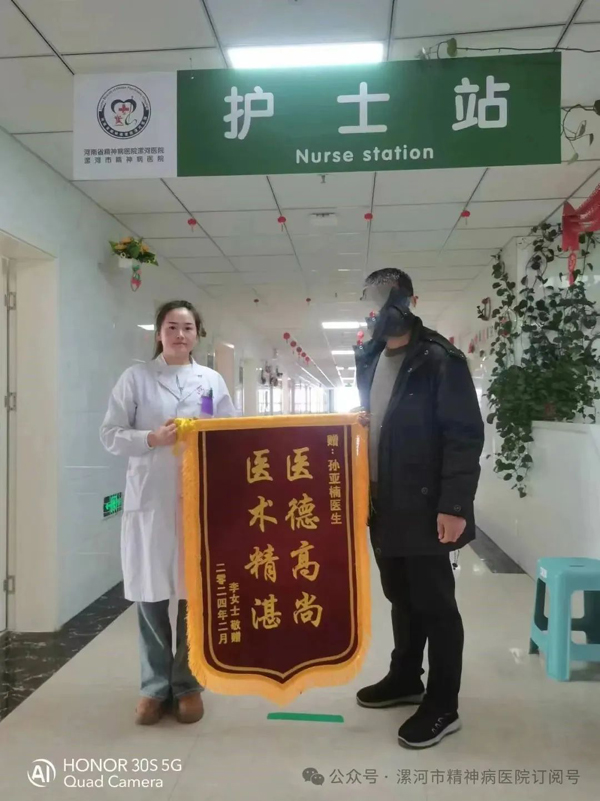 3月4日一大早,一名患者家屬懷著一顆無比感恩的心來到了漯河市精神病醫(yī)院精神四科,感謝我院孫亞南醫(yī)生及全體醫(yī)護(hù)人員,并送上一面錦旗,他的患者是一名在校學(xué)生,在家不出門,不與人溝通,緊張、害怕,嚴(yán)重影響到日常生活,不能正常上學(xué),經(jīng)門診收住院,入院后,孫醫(yī)生耐心詢問患者的病情,根據(jù)患者的癥狀進(jìn)行病情評估,制定了詳細(xì)的治療方案,通過一個多月的治療,患者癥狀明顯改善。能與人交流了,臉上也露出了久違的笑容。家屬對醫(yī)院的診療和服務(wù)水平非常滿意!