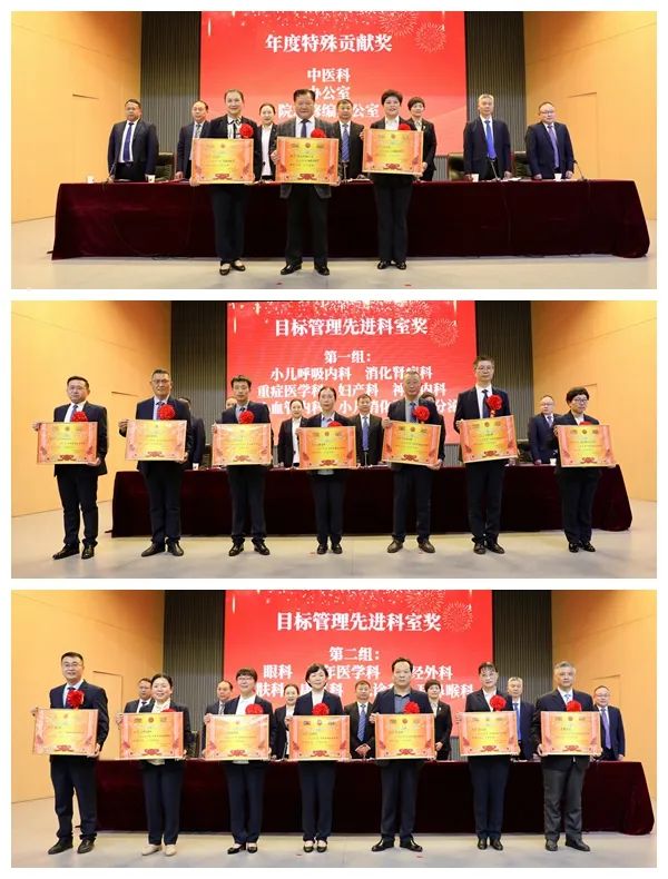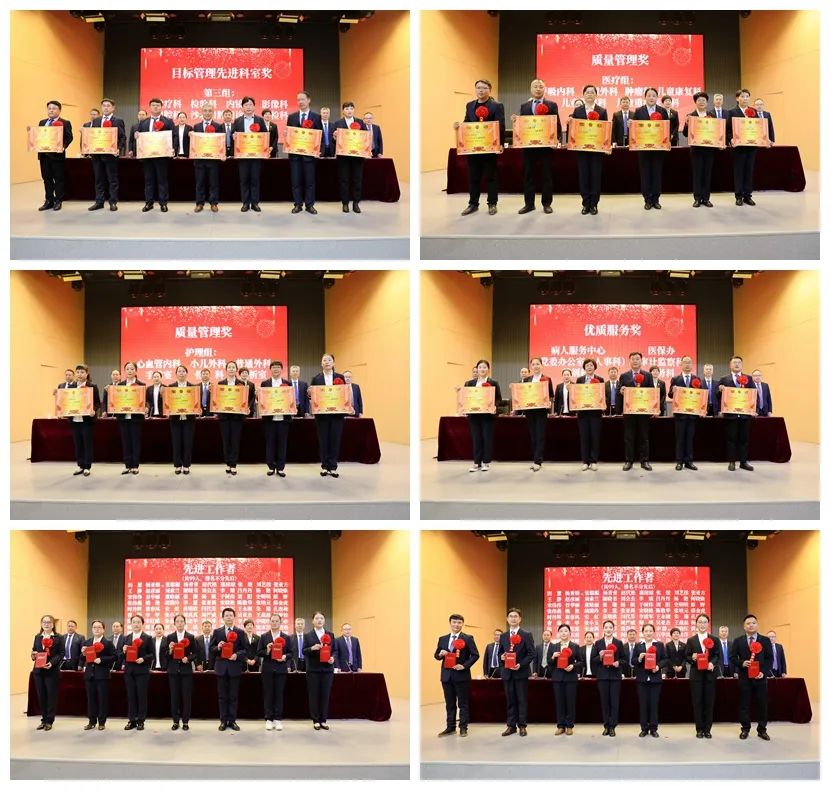 本次工作會是醫(yī)院開啟2024年高質(zhì)量發(fā)展新篇章、奮進(jìn)三甲創(chuàng)建新征程關(guān)鍵節(jié)點(diǎn)上召開的鼓干勁、聚合力的重要會議。副院長謝彩玲、副院長郭長根、紀(jì)委書記孟德陽、副院長張曉東、工會主席李世學(xué)按照大會既定議程,依次宣讀了2023年度先進(jìn)集體、先進(jìn)工作者等表彰文件和表彰名單,對2023年度特殊貢獻(xiàn)獎(jiǎng)、目標(biāo)管理先進(jìn)科室、質(zhì)量管理獎(jiǎng)、優(yōu)質(zhì)服務(wù)獎(jiǎng)、先進(jìn)工作者進(jìn)行了表彰。被表彰科室代表和先進(jìn)個(gè)人代表披紅戴花,精神抖擻,從院領(lǐng)導(dǎo)手中接過象征榮譽(yù)和期望的獎(jiǎng)牌、獎(jiǎng)狀,熱烈的掌聲響徹學(xué)術(shù)報(bào)告廳,展現(xiàn)了二院人奮勇拼搏、干必出彩的良好精神風(fēng)貌,為新的一年工作擂響了戰(zhàn)鼓,鼓足了干勁。