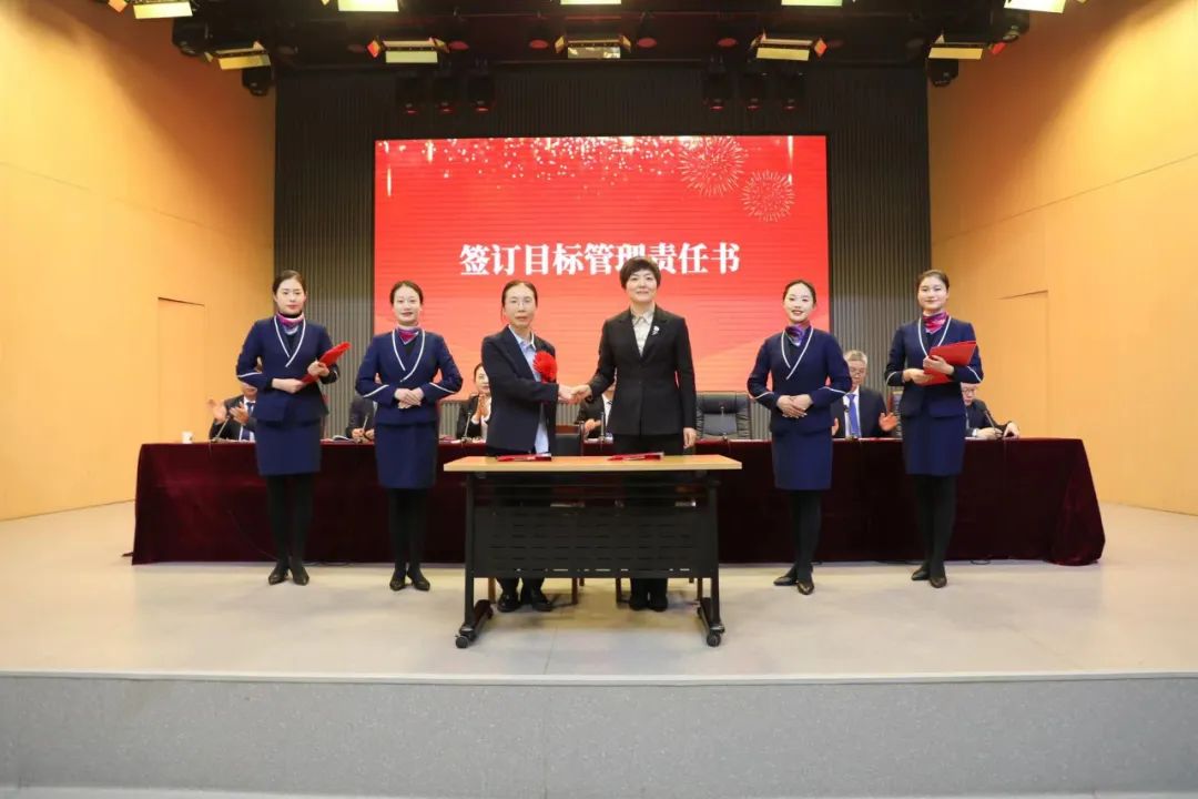 表彰結(jié)束后,黨委書記魏松與黨支部書記代表--兒科黨支部書記郭先鋒簽訂了2024年黨建和黨風(fēng)廉政建設(shè)目標(biāo)責(zé)任書,院長王瑾與科主任代表--婦產(chǎn)科主任井紅鴿簽訂了2024年科室目標(biāo)管理責(zé)任書,醫(yī)院用兩類“軍令狀”轉(zhuǎn)化為新的一年工作的“指揮棒”和“動員令”,精準(zhǔn)指引各科室新一年發(fā)展方向。