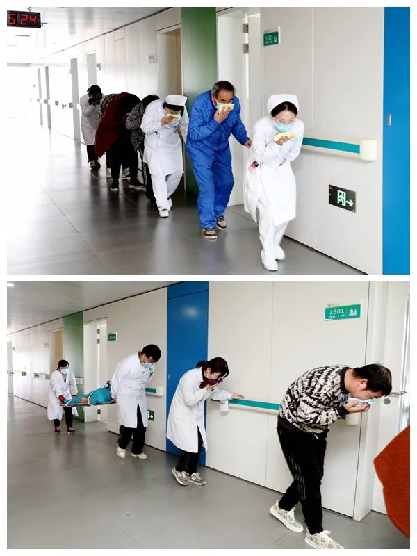 按照預(yù)案流程,醫(yī)院各救援小組緊急開展救援,科室醫(yī)護(hù)人員立即組織引導(dǎo)患者和家屬有序進(jìn)行疏散撤離。對于不能行動的病人,醫(yī)護(hù)人員通過擔(dān)架迅速將其轉(zhuǎn)移至安全地帶。