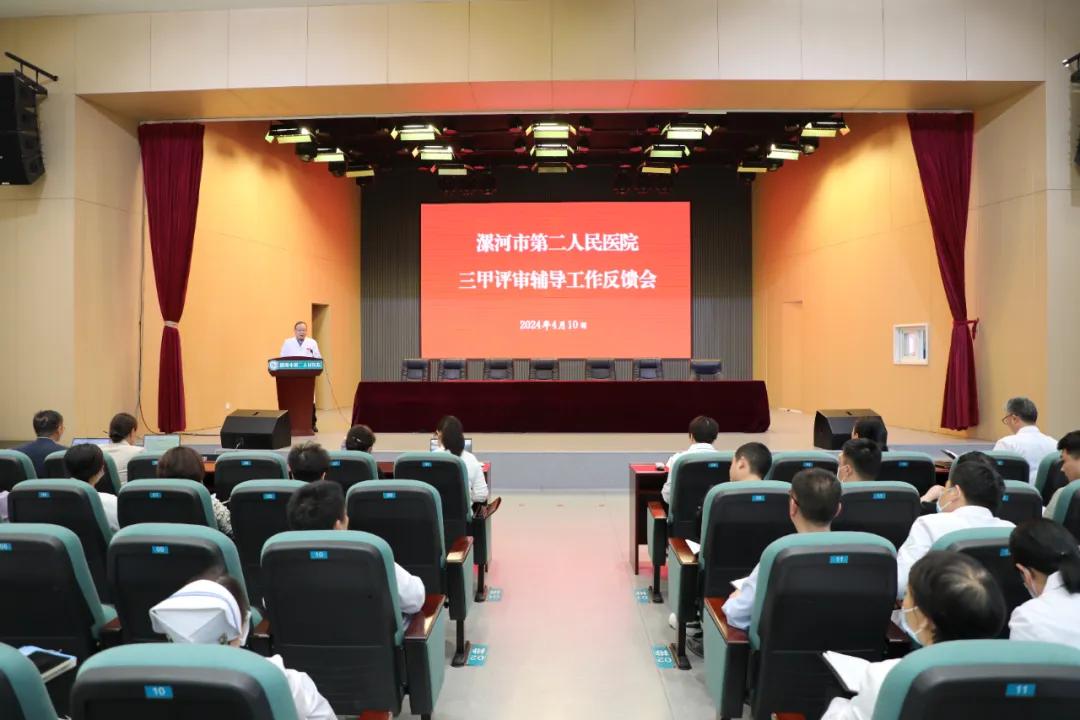 4月10日下午,針對3天的輔導,醫(yī)院召開了三甲創(chuàng)建等級評審第二輪輔導工作反饋會,院領導班子、全體中層干部及全院數(shù)據(jù)管理員200余人參加會議。會議由副院長張曉東主持。