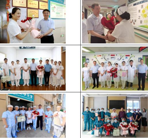 上午9點,醫(yī)院領導班子成員來到各個護理單元,為護理工作者送上精心準備的鮮花、蛋糕和慰問品。每到一處,院領導們都與護理人員親切握手,并詳細詢問大家的工作和生活情況,表達醫(yī)院的關心和支持,送去節(jié)日的祝福。院領導高度贊揚了護士們在臨床工作中的辛勤付出和無私奉獻,并表示護理工作者是醫(yī)院的寶貴財富,是患者康復的重要力量,各位的努力和付出,為醫(yī)院的發(fā)展做出了重要貢獻。