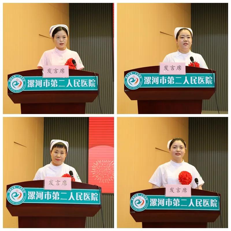 受表彰的市級優(yōu)秀護理團隊代表小兒呼吸內(nèi)科胡媛媛、市級優(yōu)秀護士代表小兒外科張小玉、院級優(yōu)秀護理團隊代表心血管內(nèi)科伊獻麗、院級優(yōu)秀護士代表神經(jīng)外科何孟麗分別做了典型發(fā)言。