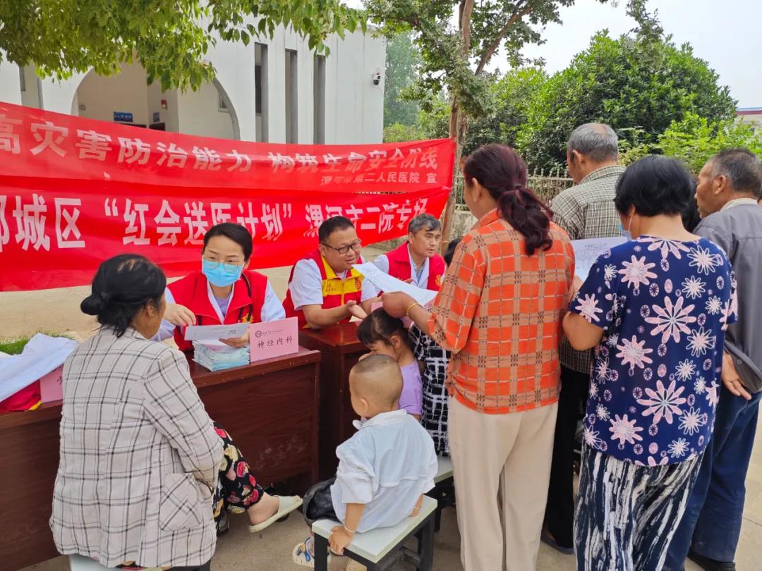 漯河市紅十字會黨組成員、副會長劉國防,市二院副院長張曉東,市二院工會主席李世學(xué),郾城區(qū)紅十字會副會長李山峰,龍城鎮(zhèn)衛(wèi)生院相關(guān)負(fù)責(zé)同志出席了本次對接會議和義診活動。對接會上,市紅會副會長劉國防對市二院“紅會送醫(yī)計劃”所做的工作表示了高度的肯定,并向醫(yī)院頒發(fā)了2023年河南省“紅會送醫(yī)計劃”先進(jìn)單位、2023年漯河市“紅會送醫(yī)計劃”先進(jìn)單位兩塊獎牌,對市二院李慧新等7名同志獲得省級和市級“優(yōu)秀紅十字醫(yī)療專家志愿者”稱號表示祝賀。