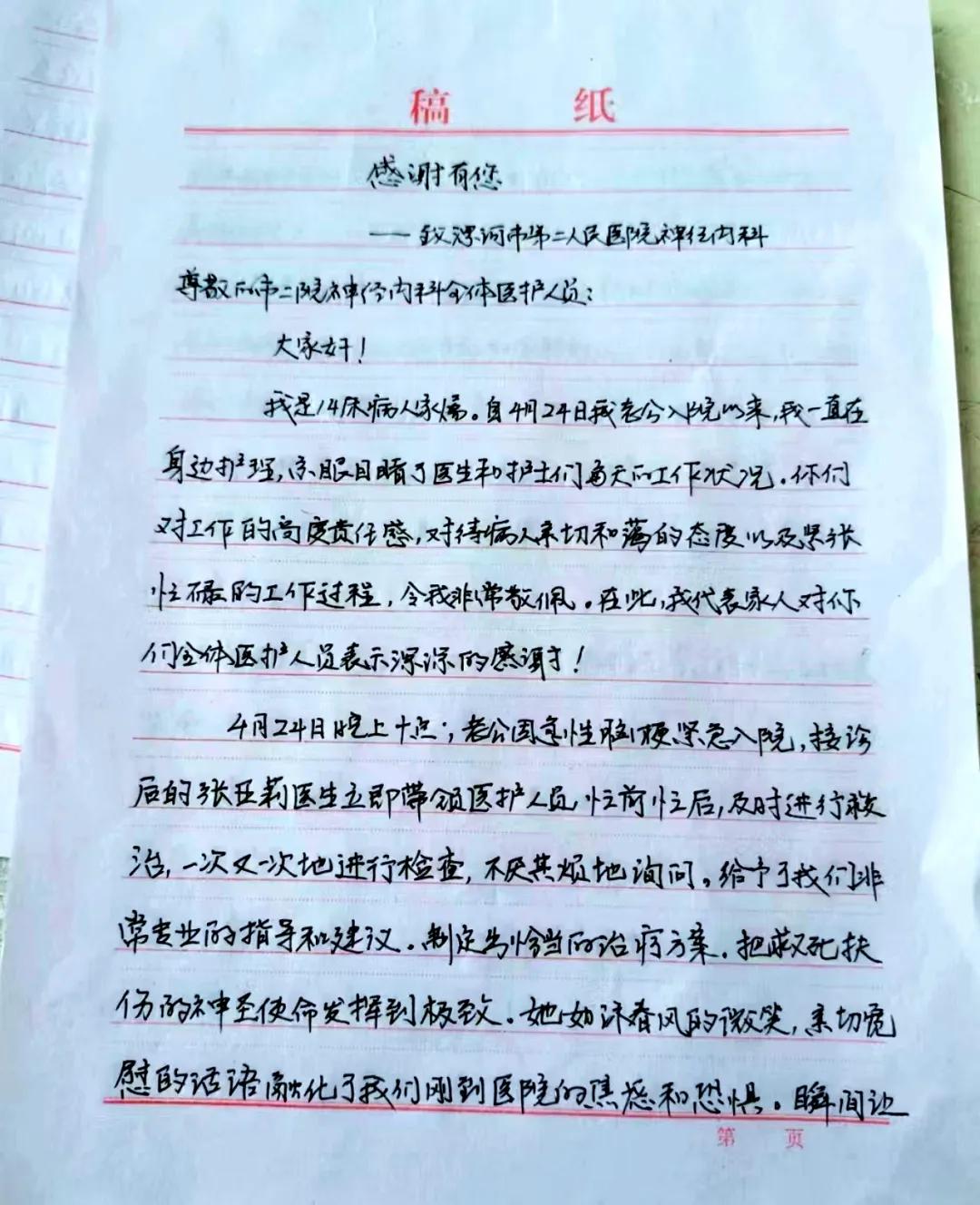 字字顯真情 句句贊醫(yī)心——市二院神經(jīng)內(nèi)科收到感謝信