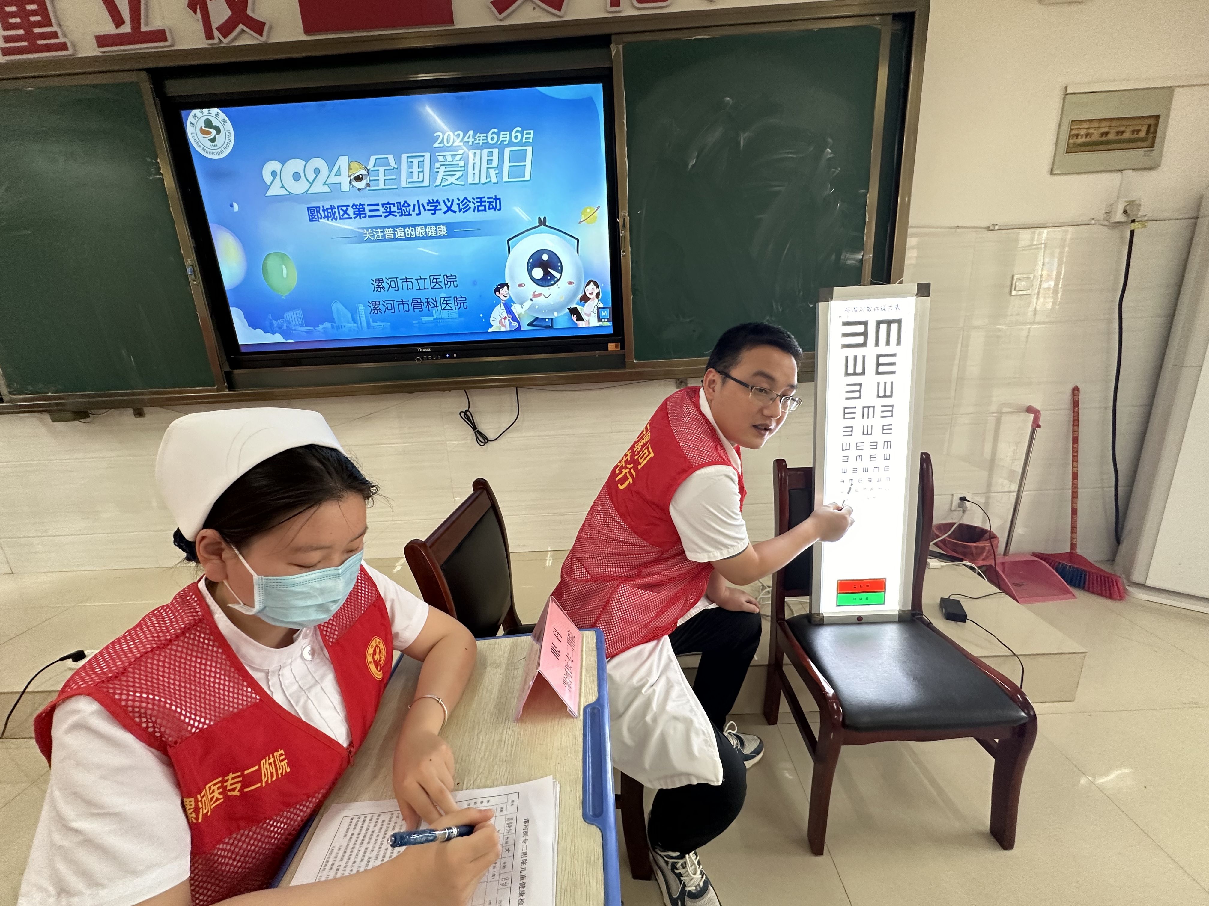 (記者王明杰 通訊員韓書環(huán))第29個全國“愛眼日”來臨之際,為提高青少年眼健康水平、普及科學(xué)用眼知識,助力學(xué)生健康成長,6月5日下午,漯河市骨科醫(yī)院(漯河醫(yī)專二附院、漯河市立醫(yī)院)社會工作部積極協(xié)調(diào)組織兒科、眼科、五官科等醫(yī)療專家志愿者到郾城區(qū)第三實(shí)驗(yàn)小學(xué)開展大型義診活動。