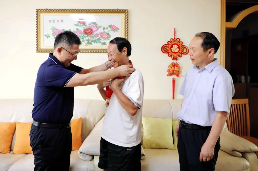 慰問(wèn)過(guò)程中,王向良同志為謝學(xué)政同志戴上沉甸甸的紀(jì)念章,關(guān)切詢(xún)問(wèn)謝學(xué)政同志及其家人的生活和身體狀況。孟德陽(yáng)同志受院黨委的委托,向謝學(xué)政同志為醫(yī)院的發(fā)展所做出的辛勤付出、無(wú)私奉獻(xiàn)表達(dá)了衷心感謝,叮囑他保重身體,今后有什么困難要及時(shí)告知醫(yī)院,醫(yī)院是他永遠(yuǎn)的后盾,并希望他一如既往地關(guān)心醫(yī)院工作,為醫(yī)院高質(zhì)量發(fā)展積極建言獻(xiàn)策。
