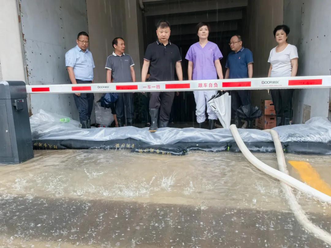 7 月16日,漯河普降暴雨,按照全市統(tǒng)一部署和衛(wèi)健委要求,市二院立即啟動防汛預案和應急響應機制,黨委書記魏松、院長王瑾靠前指揮,帶領班子成員和相關職能科室人員迅速行動,主動關閉地下車庫布置防水擋板和沙袋,同時加固配電房防水沙袋墻,重點點位人員全部上崗包點駐守,確保能夠第一時間發(fā)現問題及時響應堵漏補缺,全力保障醫(yī)院安全穩(wěn)定運行。