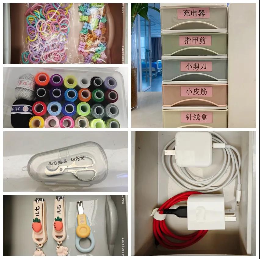 1.考慮到住院患兒的各種緊急需要,科室及時(shí)配備了一次性口杯、小皮筋、發(fā)夾、指甲剪、切藥器、充電器、針線盒等物品,以備不時(shí)之需。
