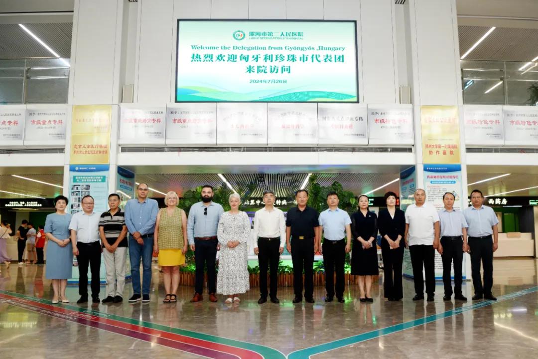 朋自遠(yuǎn)方來,攜手話合作。7月26日,漯河市友好城市——匈牙利珍珠市議會主席嘉柏瑞拉·森、聯(lián)絡(luò)處主任托馬斯·皮??啤H關(guān)系處主任拉斯洛·恰爾達(dá)斯、杜比茨酒莊總經(jīng)理喬治·杜奈組成的珍珠市代表團(tuán),蒞臨漯河市第二人民醫(yī)院,交流醫(yī)療合作事宜。匈牙利河南總商會會長白勇、副會長應(yīng)建輝,市衛(wèi)健委黨組書記、主任宋耀生,市委外辦副主任楊興濤,市衛(wèi)健委醫(yī)政科長王彩紅參加活動,市二院黨委書記魏松、院長王瑾攜班子成員及相關(guān)職能部門負(fù)責(zé)同志全程陪同。