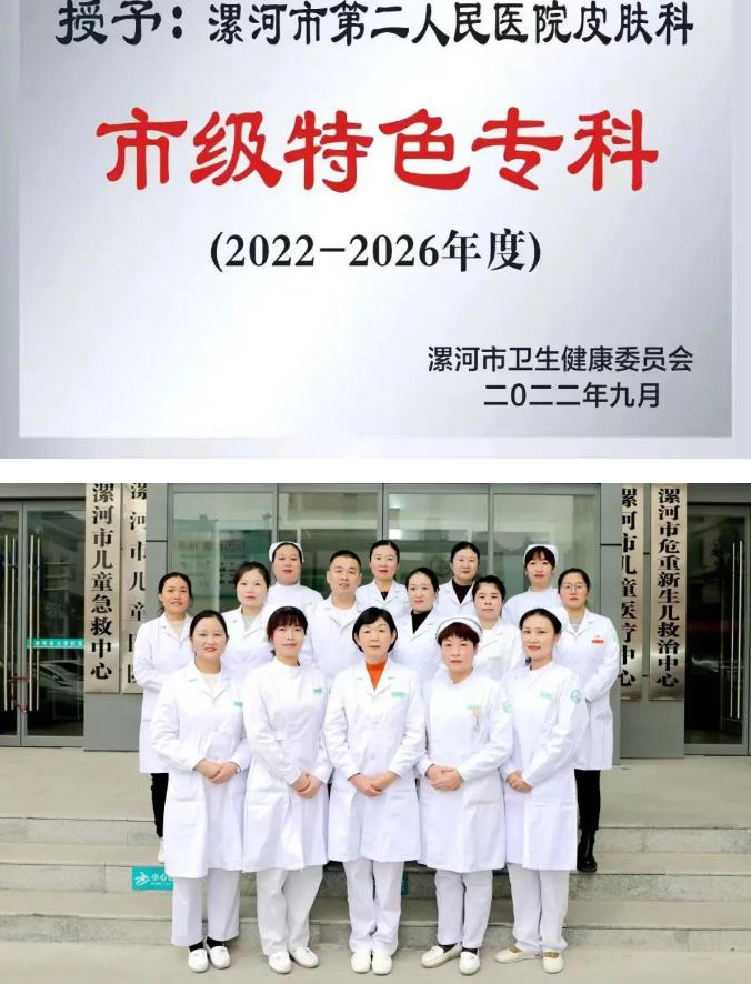 皮膚科經(jīng)過40多年的發(fā)展,目前為漯河市規(guī)模較大、技術(shù)力量雄厚的市級(jí)特色??疲?020年掛牌“漯河市皮膚病醫(yī)院”,是中國(guó)醫(yī)學(xué)科學(xué)院、北京協(xié)和醫(yī)院皮膚病研究所、中南大學(xué)湘雅醫(yī)院、河南省人民醫(yī)院、河南省中醫(yī)藥大學(xué)第一附屬醫(yī)院等皮膚??坡?lián)盟單位。先后榮獲河南省青年文明號(hào)、漯河市青年文明號(hào)等榮譽(yù)稱號(hào)。