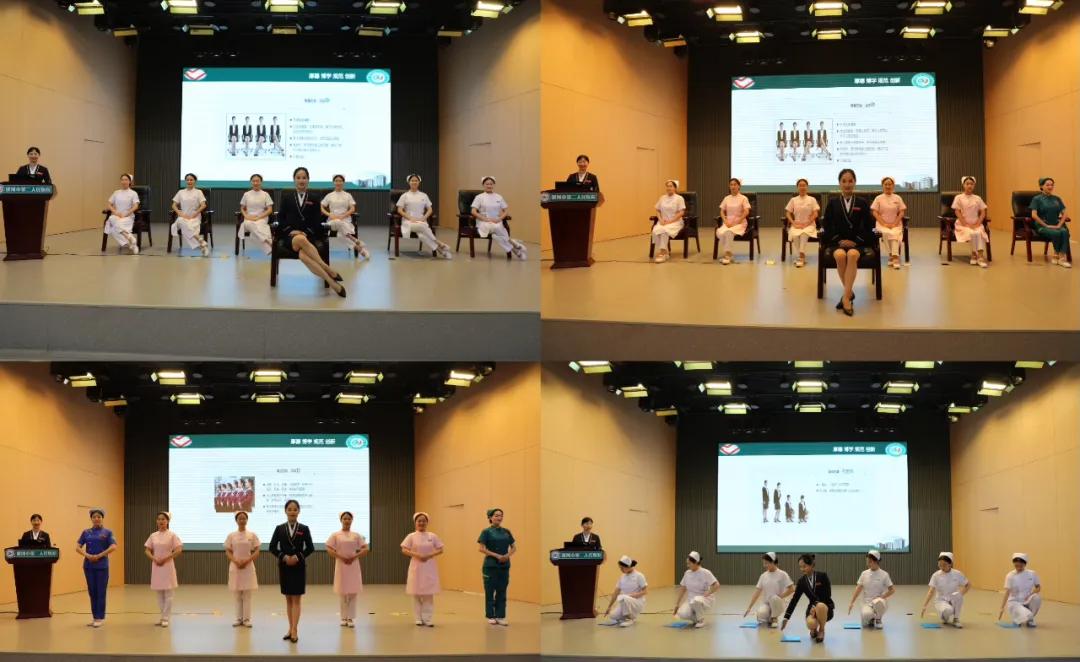 禮儀實(shí)踐環(huán)節(jié)由病人服務(wù)中心副主任張靜組織醫(yī)院導(dǎo)診團(tuán)隊(duì)現(xiàn)場(chǎng)演示并指導(dǎo)站姿、坐姿、走姿、蹲姿、工作姿態(tài)和接待禮儀等服務(wù)禮儀規(guī)范。