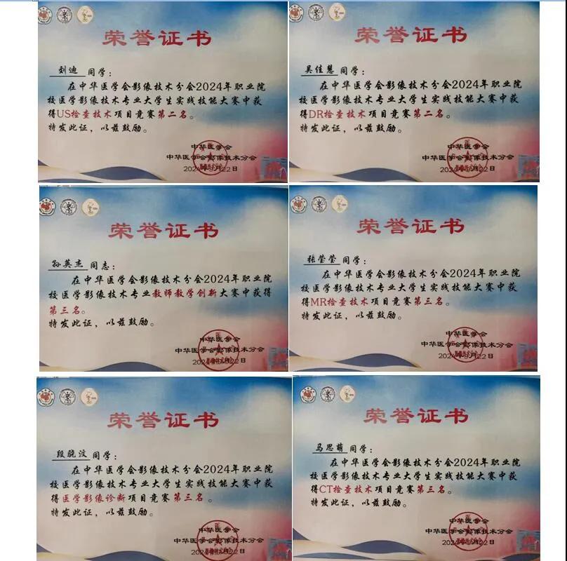 其中,吳佳慧、劉迪同學(xué)分別榮獲DR檢查技術(shù)和超聲組第二名,張瑩瑩、馬思萌、段驍汶同學(xué)分別榮獲MRI和CT檢查技術(shù)、醫(yī)學(xué)影像診斷組第三名,孫英杰老師榮獲教師優(yōu)秀創(chuàng)新大賽第三名,參賽團(tuán)隊榮獲團(tuán)體項目競賽第三名,優(yōu)秀的成績贏得了大賽評委和參賽同道的廣泛贊譽。這也是繼2018年首次參加該賽事后,漯河醫(yī)學(xué)高等??茖W(xué)校第三次參加這項全國性的醫(yī)學(xué)影像技術(shù)專業(yè)實踐技能大賽。