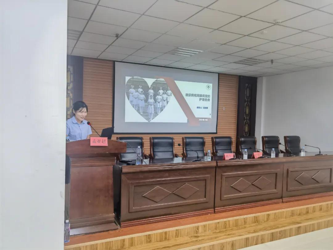 講座中,主管護(hù)師孟亞超通過(guò)一例糖尿病視網(wǎng)膜病變患者的實(shí)例,巧妙引出講座主題《糖尿病視網(wǎng)膜病變患者的術(shù)后護(hù)理查房》。她詳細(xì)介紹了護(hù)理查房的內(nèi)容、規(guī)范化流程以及如何去分析查房的重點(diǎn)問(wèn)題和有效的實(shí)施相關(guān)護(hù)理措施。