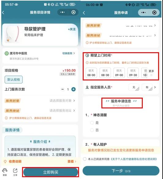 三、閱讀服務(wù)須知,點(diǎn)擊“立即購(gòu)買”;選擇預(yù)約時(shí)間,填寫(xiě)服務(wù)申請(qǐng)信息。