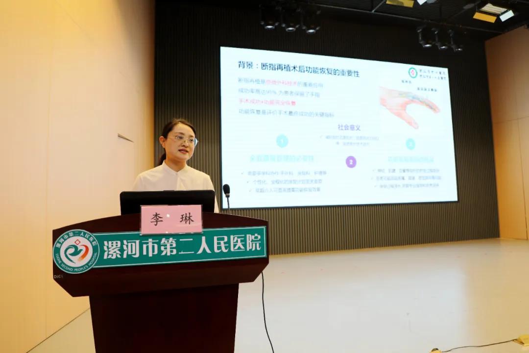 學(xué)術(shù)交流會上,市中心醫(yī)院創(chuàng)傷骨科外科護理規(guī)培基地秘書李琳講解了《全程康復(fù)護理管理模式在斷指再植患者術(shù)后功能恢復(fù)中的應(yīng)用》,分享醫(yī)院的全程康復(fù)護理管理模式,實現(xiàn)了從術(shù)前準備到長期隨訪的全程管理,提高了康復(fù)治療的標準性和個體化水平。