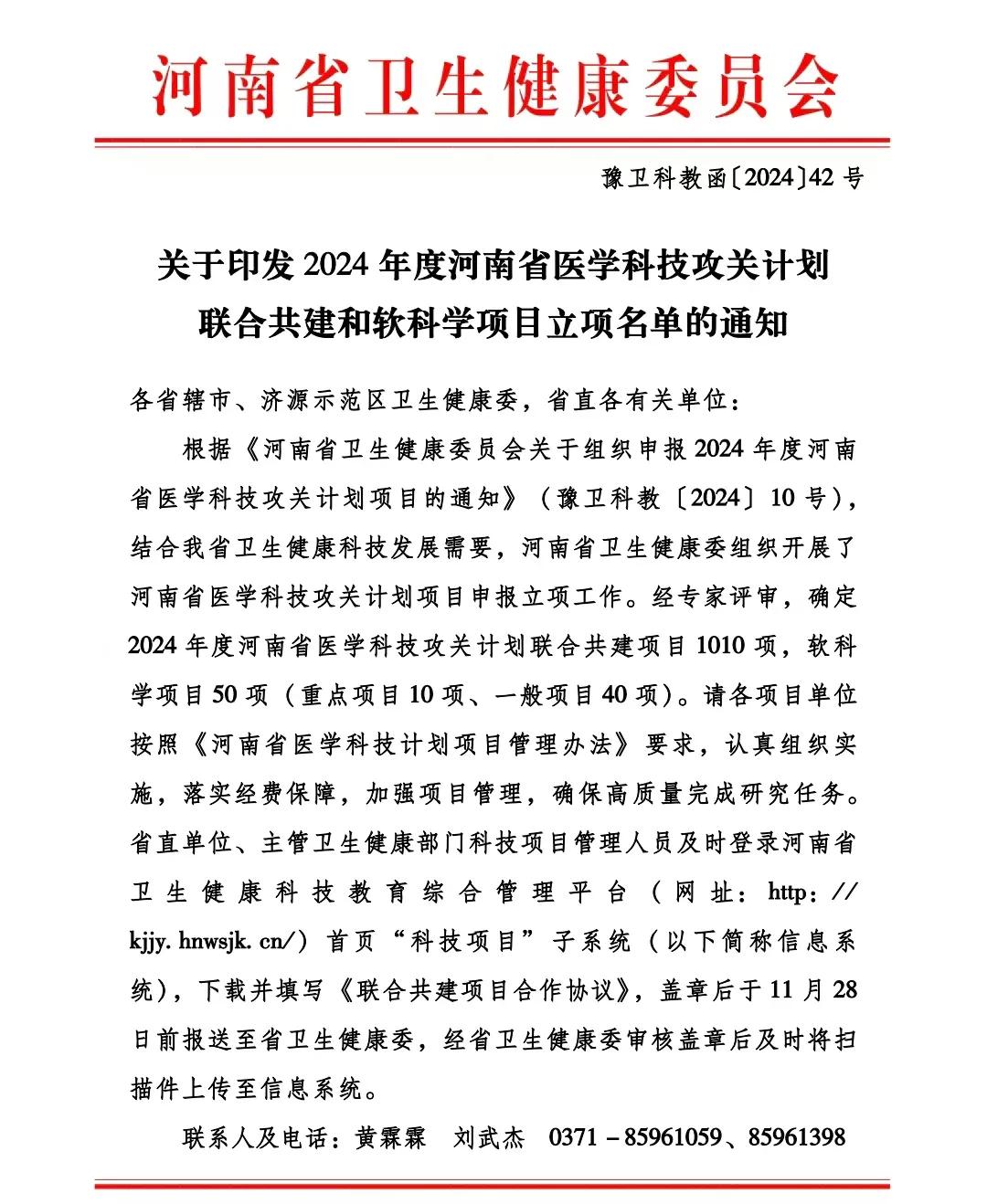 漯河市中醫(yī)院一項(xiàng)河南省醫(yī)學(xué)科技攻關(guān)計(jì)劃項(xiàng)目獲得立項(xiàng)批復(fù)