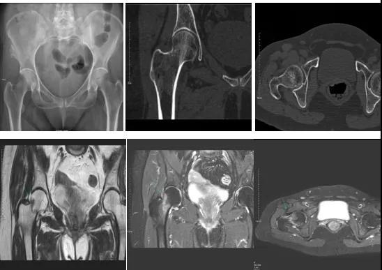DR示:右側(cè)股骨頸未見(jiàn)明顯骨折征象。CT右側(cè)股骨頸骨質(zhì)密度不均?;颊唧w征明顯,為明確診斷,行MRI檢查。MRI示:右側(cè)股骨頸T1WI呈低信號(hào),脂肪抑制序列呈高信號(hào);提示右側(cè)股骨頸隱匿性骨折。