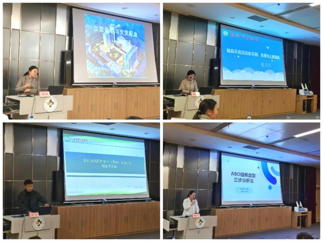 第二部分是專題培訓會,首先由漯河市中心醫(yī)院賈小村老師為大家分享了《血型鑒定與交叉配血》,其次,由漯河市中醫(yī)院張丹丹老師為大家?guī)怼遁斞涣挤磻淖R別、處理與上報》,緊接著,臨潁縣人民醫(yī)院陳陽主任給大家匯報了《輸血相關不良事件的報告》,最后,漯河醫(yī)專二附院劉歡老師給大家?guī)砹恕禔BO疑難血型三步分析法》。這些老師從實際工作出發(fā),具體分析了輸血工作中可能遇到的問題及注意事項,無私分享了寶貴的工作經(jīng)驗,會議在掌聲中圓滿結(jié)束。