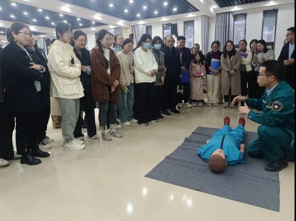 為增強(qiáng)居民健康保健知識(shí)及急救技能,提高胸痛患者區(qū)域協(xié)同救治能力,提升醫(yī)院胸痛中心建設(shè)內(nèi)涵,11月12日下午,我院社會(huì)工作部主任韓書環(huán)、心內(nèi)二病區(qū)副主任馬彥輝、急診重癥監(jiān)護(hù)病房主治醫(yī)師徐少奇應(yīng)邀到許慎高級(jí)中學(xué),對(duì)該校100余名教職工開展冠心病健康知識(shí)講座、心肺復(fù)蘇技能培訓(xùn)。