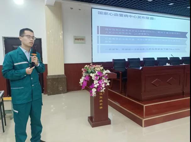 講座現(xiàn)場(chǎng),馬彥輝為該校教職工科普心血管疾病相關(guān)知識(shí),從冠心病的概況、癥狀與性質(zhì)、急性心肌梗死的形成以及ACS的急救措施等內(nèi)容進(jìn)行了詳細(xì)講解。針對(duì)心血管疾病的危險(xiǎn)因素,重點(diǎn)與在場(chǎng)人員分享了冠心病的預(yù)防措施,介紹了飲食健康、控制體重、定期運(yùn)動(dòng)、減輕生活壓力及戒煙限酒等對(duì)于降低心血管疾病風(fēng)險(xiǎn)的重要性。