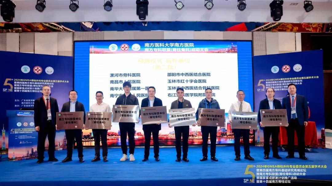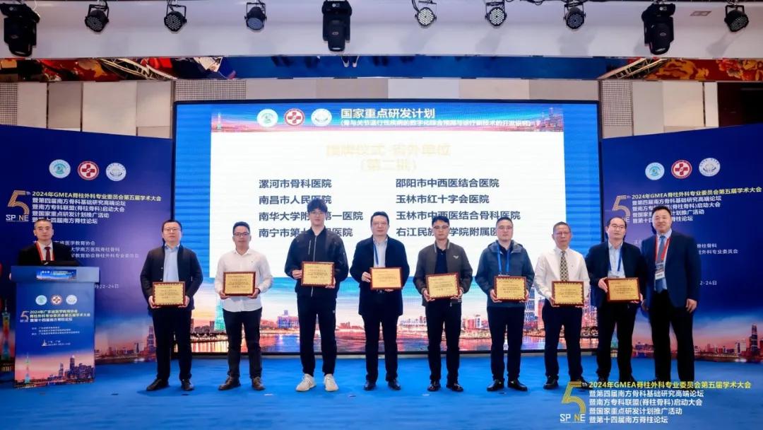 11月22日—24日,由廣東省醫(yī)學(xué)教育協(xié)會、南方醫(yī)科大學(xué)南方醫(yī)院脊柱骨科聯(lián)合主辦,廣東省醫(yī)學(xué)教育協(xié)會脊柱外科專業(yè)委員會承辦的“2024年GMEA脊柱外科專業(yè)委員會第五屆學(xué)術(shù)大會”在廣東廣州成功舉行。在南方??坡?lián)盟(脊柱骨科)啟動大會暨國家重點(diǎn)研發(fā)計(jì)劃推廣活動上,漯河市骨科醫(yī)院(漯河醫(yī)專二附院、漯河市立醫(yī)院)榮獲“國家重點(diǎn)研發(fā)計(jì)劃-骨與關(guān)節(jié)退行性疾病的數(shù)字化綜合預(yù)測與診療新技術(shù)的開發(fā)研究課題推廣單位”與“南方??坡?lián)盟單位(脊柱外科)”雙項(xiàng)授牌!