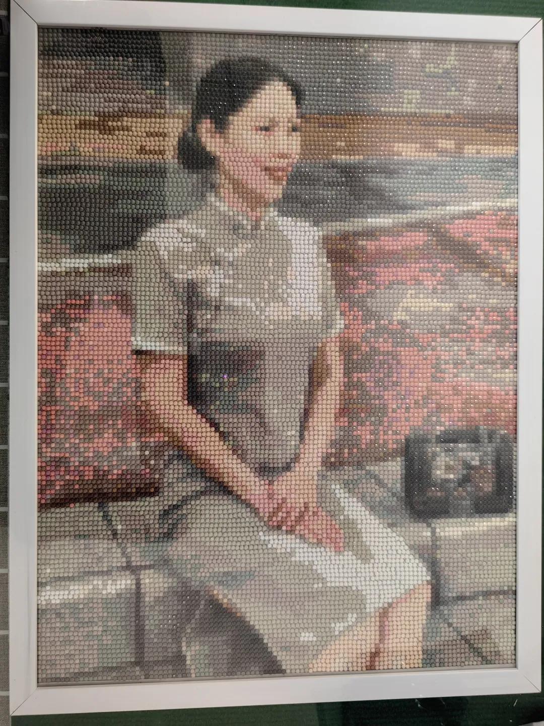 為了表達(dá)感激之情,皓皓在媽媽的鼓勵下,利用假期和周末的兩個多月時間,堅持不懈地精心制作,最終完成了這幅以“鉆石”鑲嵌而成的董醫(yī)生肖像畫,專程送給眼科團(tuán)隊。