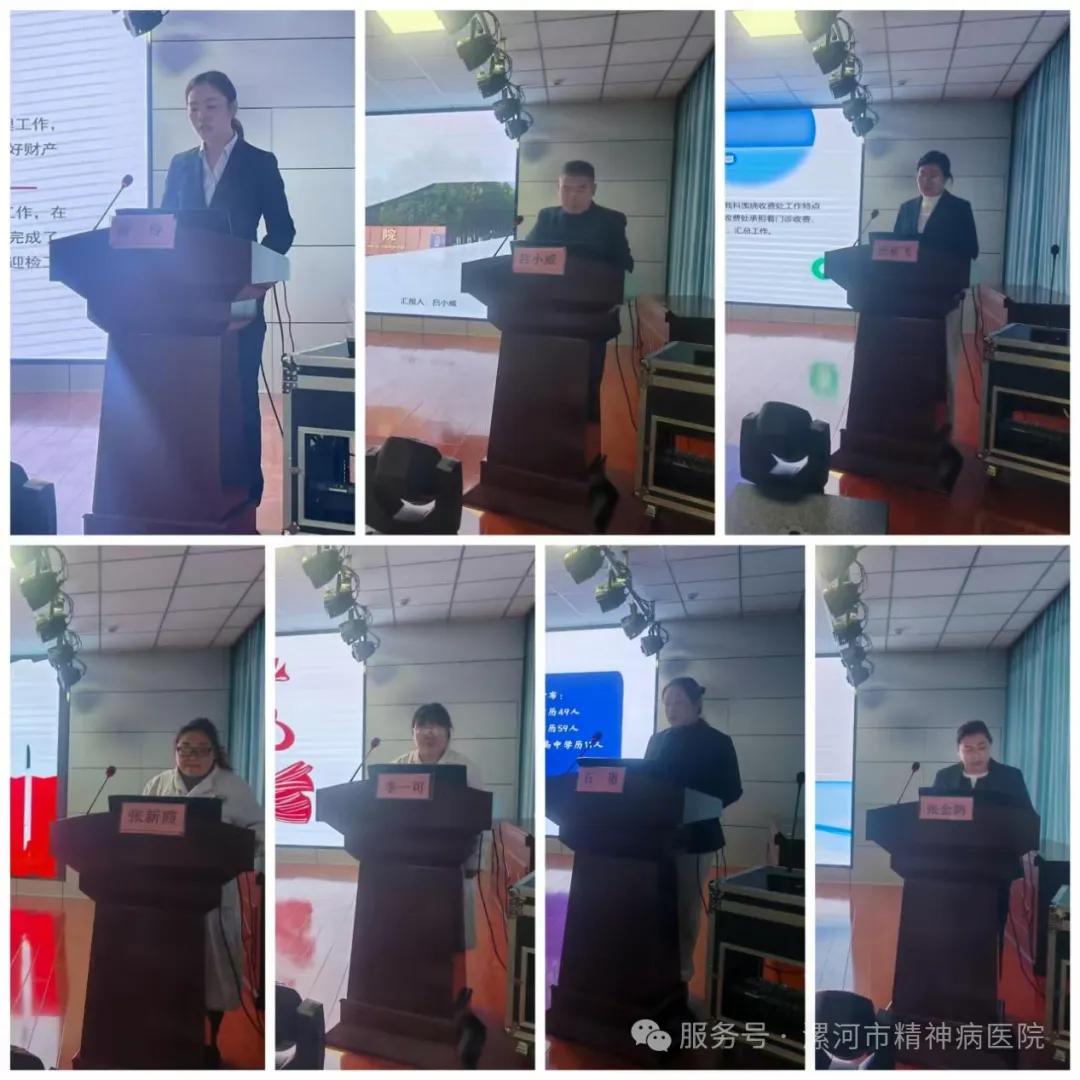 首先,心身醫(yī)學(xué)二科、精一二科、精三四科、精五六科主任進(jìn)行總結(jié)匯報(bào),匯報(bào)內(nèi)容主要包括本科室開展的特色工作、取得的工作成效、工作中的不足以及未來工作規(guī)劃,呂書記及各位副院長進(jìn)行了剖析點(diǎn)評。