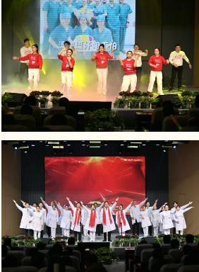 院領(lǐng)導(dǎo)班子也全員參與,登上舞臺表演了歌曲、詩朗誦、太極拳、相聲、三句半等節(jié)目,他們?nèi)橥度氲谋硌?,展現(xiàn)出了十足的活力,拉近了與職工之間的距離,讓大家感受到了醫(yī)院這個大家庭的溫暖與團結(jié),他們的登場也瞬間點燃了現(xiàn)場的氣氛,將聯(lián)歡會的氛圍推向了高潮。