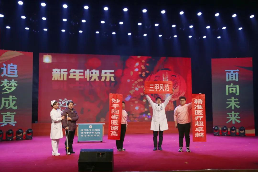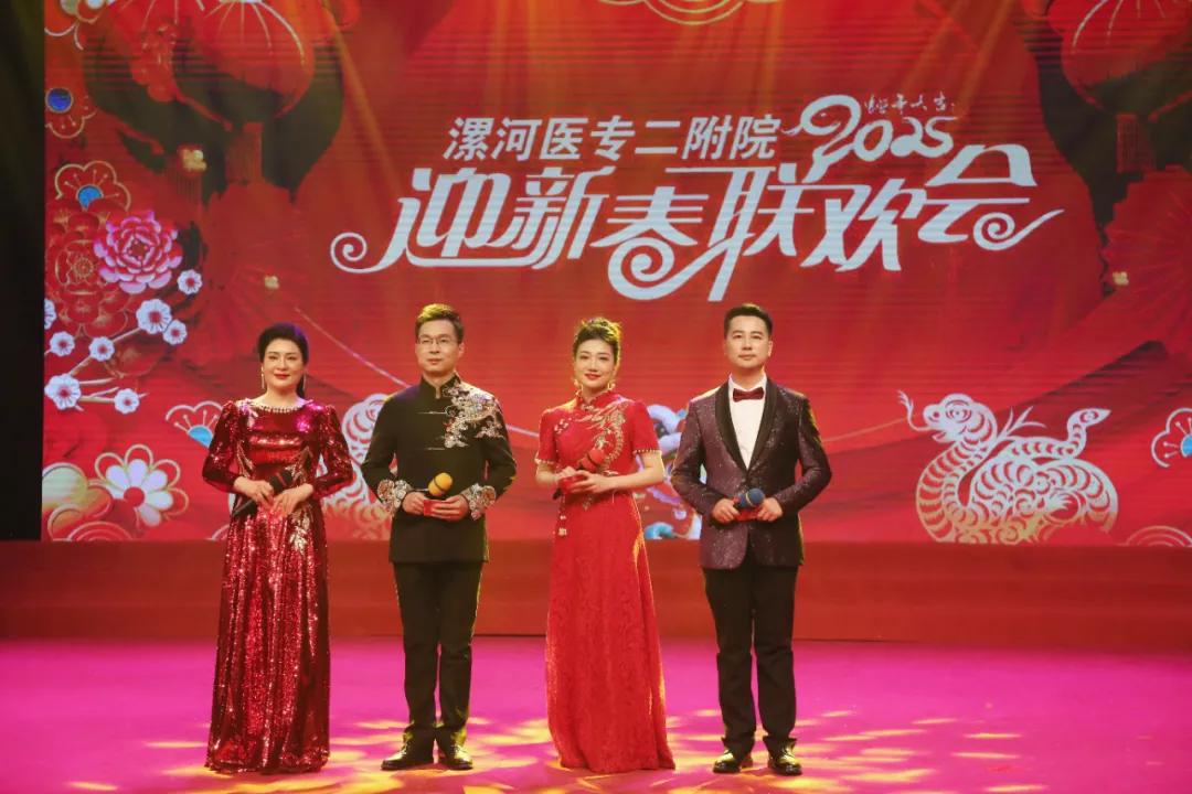 為慶祝漯河醫(yī)專二附院(漯河市骨科醫(yī)院、漯河市立醫(yī)院)建院七十五周年,1月21日,漯河醫(yī)專二附院2025年迎新春聯(lián)歡會(huì)在漯河市科教文化藝術(shù)中心大劇院隆重舉行。漯河醫(yī)學(xué)高等??茖W(xué)校校長(zhǎng)張祎捷,市衛(wèi)生健康委副主任于宏,市醫(yī)保局副局長(zhǎng)于懷江,漯河醫(yī)專黨委副書(shū)記邊曉峰,市科協(xié)副主席臧明濤,市總工會(huì)四級(jí)調(diào)研員李敏,漯河醫(yī)專紀(jì)委書(shū)記王蕾,漯河醫(yī)專副校長(zhǎng)張福華、馬永超,漯河醫(yī)專二附院黨委書(shū)記柴運(yùn)洪,漯河醫(yī)專二附院院長(zhǎng)王齊超,漯河醫(yī)專黨辦主任楊曉宇,漯河醫(yī)專行政辦主任申耀強(qiáng),漯河醫(yī)專團(tuán)委書(shū)記周沛,市衛(wèi)健委醫(yī)政科科長(zhǎng)胡艷麗,市總工會(huì)文教衛(wèi)工會(huì)主任谷賀衛(wèi),郾城區(qū)龍塔街道辦事處主任李瑩,郾城區(qū)巴山路居委會(huì)書(shū)記王梅芝,郾城區(qū)伊坪小學(xué)校長(zhǎng)徐偉濤等出席。