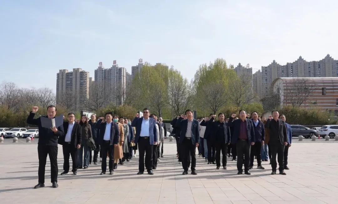 青山埋忠骨,山河念英魂。在莊嚴肅穆的漯河市烈士陵園廣場,全體黨員干部懷著崇敬的心情整齊列隊,向烈士們敬獻鮮花、花籃并鞠躬致敬,表達對革命先烈的崇高敬意和深切追思。隨后,大家舉起右拳,重溫入黨誓詞,誓言錚錚、字重千鈞。