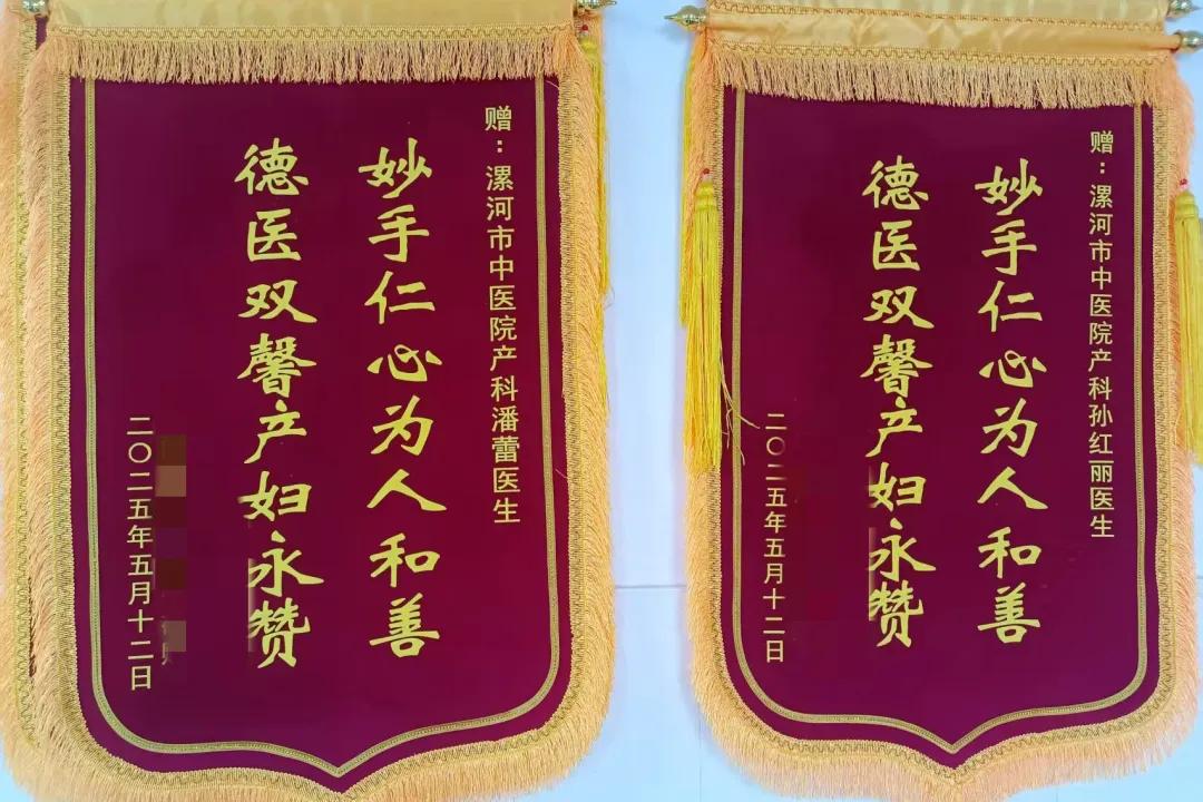 患者及家屬對婦產科團隊醫(yī)療技術及應急處理非常滿意,在康復出院后,送來兩面錦旗,上面寫著“妙手仁心為人和善,德醫(yī)雙馨產婦永贊”的字樣,飽含著對婦產科醫(yī)生及護理團隊的感激之情,也是對科室工作的認可。
