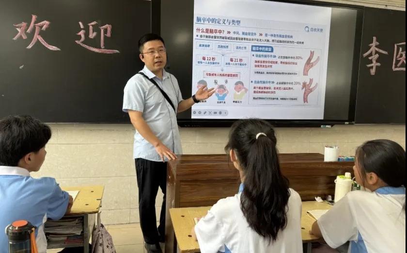 在郾城區(qū)實驗中學,神經(jīng)內科二病區(qū)副主任李闖圍繞就《健康中國,中風識別行動》進行授課。他結合多年臨床經(jīng)驗,圍繞什么是腦卒中、腦卒中的類型、發(fā)病原因與機制、高危因素、癥狀表現(xiàn)、緊急處理與急救等多方面內容展開講解,并教授“中風 120”口訣。通過情景模擬演示發(fā)現(xiàn)疑似癥狀后的正確應對流程。針對學生群體的生活習慣,普及疾病基礎知識與科學預防方法,強調要規(guī)律作息,避免熬夜、適度運動、減少高糖飲食。