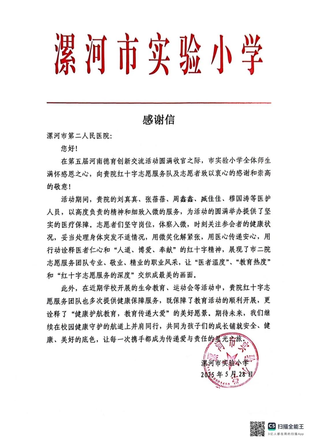 漯河市第二人民醫(yī)院:收到一封感謝信……