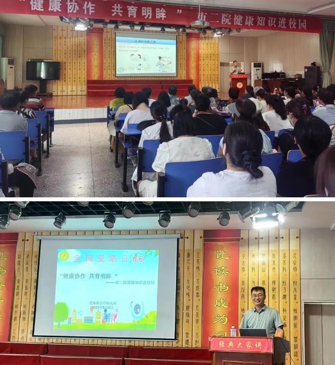 眼科主任李立應邀走進受降路幼兒園家長課堂,開展眼健康科普講座。他以《兒童常見眼病的診斷和治療》為題,用通俗易懂的語言詳細講解了兒童常見的近視、斜視、弱視、上瞼下垂和眼瞼內(nèi)翻倒睫,以及這些眼病對孩子們視力發(fā)育的影響。李立主任強調(diào),幼兒時期是視力發(fā)育的關鍵階段,家長要注意培養(yǎng)孩子良好的用眼習慣,嚴格控制孩子使用電子產(chǎn)品,保證充足的戶外活動。針對家長們提出的熱點問題,李立主任一一耐心解答,給出個性化建議。