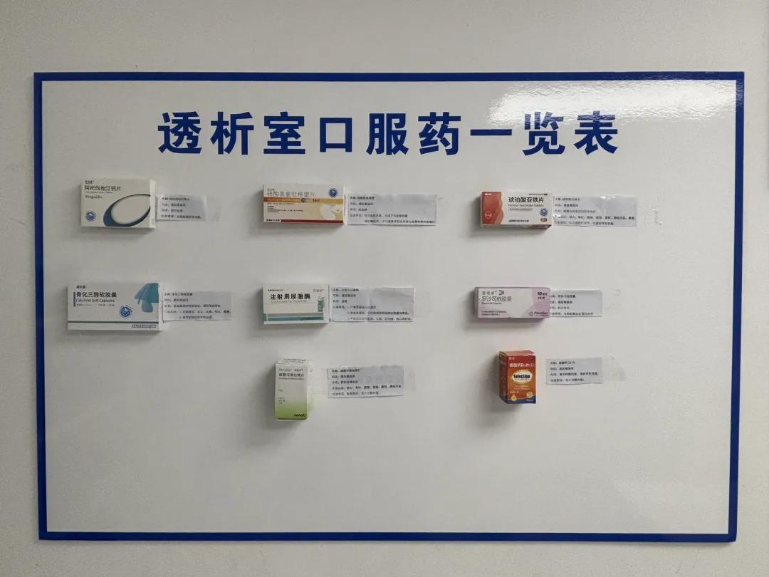 隨著醫(yī)學(xué)技術(shù)的發(fā)展,高齡患者越來越多,即便醫(yī)護(hù)人員反復(fù)講解用藥方法,患者和家屬仍可能因記憶模糊、理解偏差導(dǎo)致用錯藥。為了解決這一難題,血液凈化室推行 “口服藥上墻” 舉措,患者可以拿著自己藥盒與墻上的藥盒進(jìn)行一一對照。藥盒旁配有詳盡說明,圖文并茂,直觀易懂,有效避免用藥誤區(qū),確保患者用藥安全,提升治療效果。