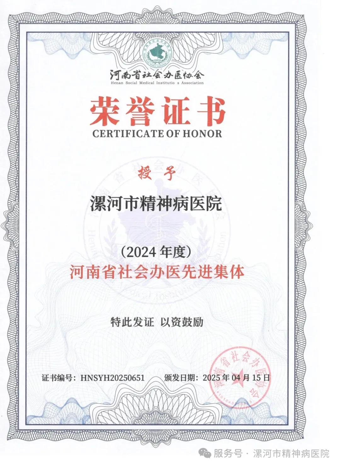 在河南省社會(huì)辦醫(yī)領(lǐng)域評(píng)選中,漯河市精神病醫(yī)院憑借卓越的醫(yī)療服務(wù)水平、專業(yè)的醫(yī)護(hù)團(tuán)隊(duì)和突出的社會(huì)貢獻(xiàn),脫穎而出,榮獲“河南省社會(huì)辦醫(yī)先進(jìn)集體”榮譽(yù)稱號(hào)!這不僅是對(duì)該院既往工作的高度認(rèn)可,更是對(duì)全體職工不懈奮斗的最高褒獎(jiǎng)。