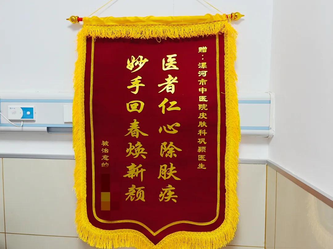 近日,漯河市中醫(yī)院皮膚科鞏潁醫(yī)生收到病人感謝的錦旗,上面寫(xiě)著“醫(yī)者仁心除膚疾,妙手回春煥新顏”,短短文字表達(dá)對(duì)醫(yī)生醫(yī)術(shù)的認(rèn)可與自己頭發(fā)重新生長(zhǎng)的喜悅。