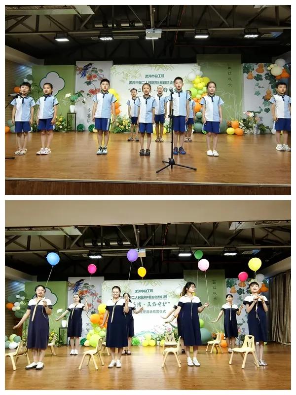 現(xiàn)場,由老師和孩子們共同表演的才藝展示拉開了結(jié)班儀式的序幕,舞蹈《愛的加減法》、非洲鼓《綠旋風(fēng)》、舞蹈《聽我說》、詩朗誦《白衣下的雙翼》等豐富多彩的節(jié)目,讓家長看到了這一個(gè)月里孩子們的成長與開心,贏得了陣陣掌聲。