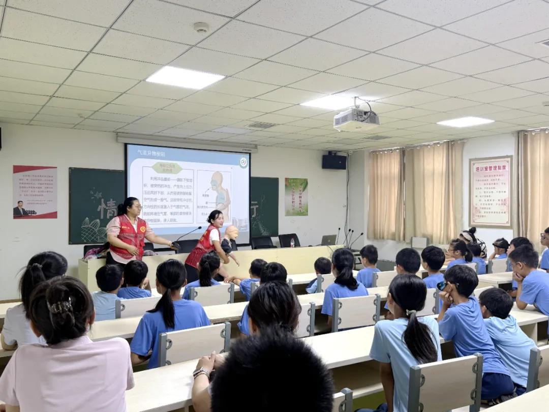 隨后,兒童重癥醫(yī)學(xué)科護師李媛通過真實案例與模擬演示,詳細的講解海姆立克急救法和心肺復(fù)蘇這兩項“救命技能”。孩子們?nèi)褙炞⒄J(rèn)真聆聽每一個細節(jié),并積極參與模擬演練,在輕松愉快的氛圍中掌握了這些關(guān)鍵的自救互救知識。