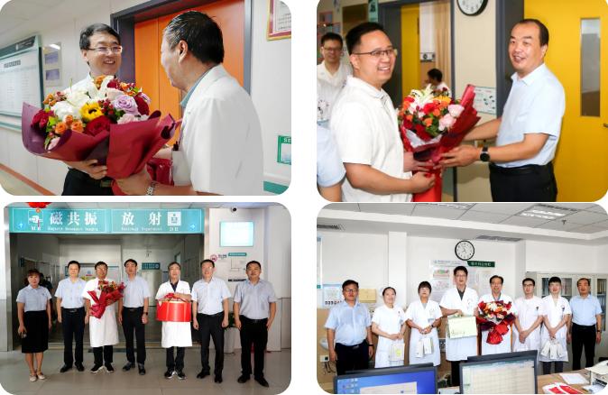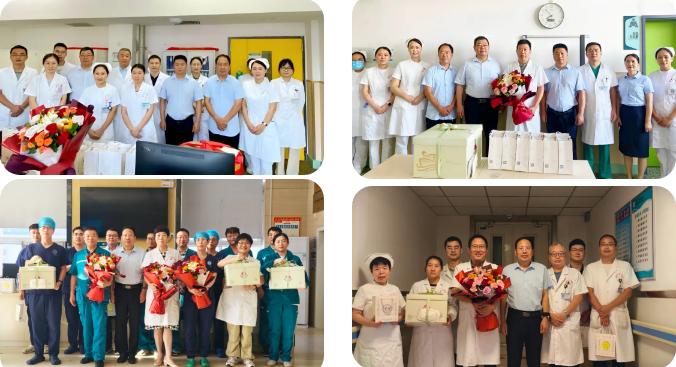 每到一個(gè)科室,醫(yī)院領(lǐng)導(dǎo)都將精心準(zhǔn)備的鮮花、香甜的蛋糕以及貼心的慰問(wèn)品送到每一位醫(yī)師手中。一句句 “辛苦了”“注意休息”,讓醫(yī)師們深切感受到醫(yī)院的關(guān)懷與支持。院領(lǐng)導(dǎo)們高度肯定并贊揚(yáng)了醫(yī)師們?cè)谂R床工作中的辛勤付出與無(wú)私奉獻(xiàn)。他們強(qiáng)調(diào),醫(yī)務(wù)工作者是社會(huì)中最崇高的職業(yè)之一,醫(yī)師們憑借自己的專業(yè)智慧和汗水,日夜守護(hù)著患者的生命健康,是生命戰(zhàn)場(chǎng)上的 “最美逆行者”。