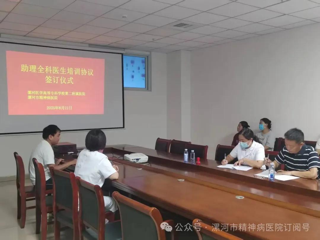 8月21日,漯河醫(yī)學(xué)高等??茖W(xué)校第二附屬醫(yī)院劉國鋒書記及相關(guān)負(fù)責(zé)人帶領(lǐng)30余名助理全科醫(yī)生到漯河市精神病醫(yī)院開展參觀學(xué)習(xí)活動。現(xiàn)場簽訂助理全科醫(yī)生培訓(xùn)合作協(xié)議,共同搭建理論與實踐相結(jié)合的學(xué)習(xí)平臺。