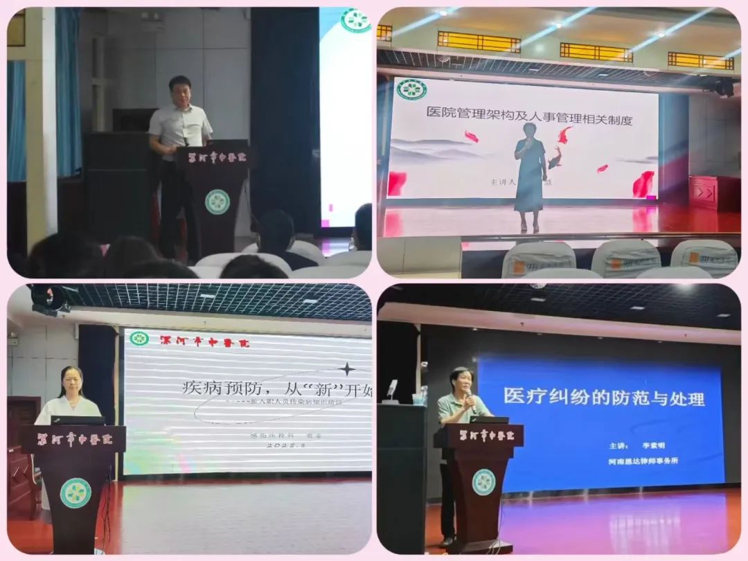 除了特色互動(dòng)環(huán)節(jié),醫(yī)院還精心規(guī)劃了系統(tǒng)化、全方位的培訓(xùn)課程,由班子成員及各職能科室負(fù)責(zé)人“傾囊相授”:從醫(yī)院文化、組織架構(gòu)到廉潔從醫(yī)紀(jì)律,從醫(yī)保政策解讀、醫(yī)患溝通技巧到醫(yī)療糾紛防范;從醫(yī)療質(zhì)量管理十八項(xiàng)核心制度、依法執(zhí)業(yè)規(guī)范,到傳染病防治法規(guī);從創(chuàng)文志愿工作要求、優(yōu)質(zhì)服務(wù)禮儀,到急救技能實(shí)操、再到規(guī)培學(xué)員專屬的培養(yǎng)方案與管理制度……課程內(nèi)容覆蓋職業(yè)發(fā)展全維度,既有理論高度,又有實(shí)踐深度,幫助新職工快速熟悉工作流程、掌握核心技能,為正式上崗做好充分準(zhǔn)備。