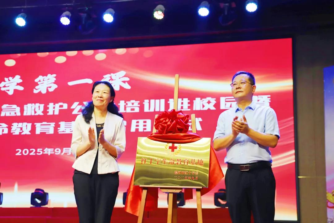 儀式上,郭峰發(fā)表致辭,表示生命教育基地的建立及應(yīng)急救護(hù)培訓(xùn)的開(kāi)展,是守護(hù)青少年健康成長(zhǎng)的重要舉措。趙國(guó)利宣讀源匯區(qū)實(shí)驗(yàn)學(xué)校紅十字會(huì)批復(fù)文件,孫穎華和郭峰共同為“源匯區(qū)實(shí)驗(yàn)學(xué)校紅十字生命教育基地”揭牌,學(xué)生代表張雅涵上臺(tái)表達(dá)對(duì)應(yīng)急救護(hù)事業(yè)的憧憬,李紅臣介紹了學(xué)校紅十字社團(tuán)的基本情況,闡述了紅十字生命教育基地啟用的重要意義,以及對(duì)未來(lái)發(fā)展的規(guī)劃。