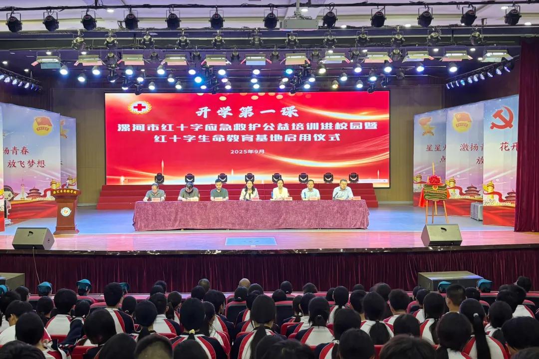 9月4日上午,漯河市紅十字會(huì)、漯河市中醫(yī)院、源匯區(qū)實(shí)驗(yàn)學(xué)校,聯(lián)合舉行開(kāi)學(xué)第一課——漯河市紅十字應(yīng)急救護(hù)公益培訓(xùn)進(jìn)校園暨紅十字生命教育基地啟用儀式。漯河市紅十字會(huì)黨組書(shū)記、常務(wù)副會(huì)長(zhǎng)孫潁華,漯河市中醫(yī)院黨委書(shū)記、院長(zhǎng)楊軼,市考試中心黨總支委員、副主任翟昕陽(yáng),源匯區(qū)政府副區(qū)長(zhǎng)、紅十字會(huì)會(huì)長(zhǎng)郭峰,源匯區(qū)教育局黨組書(shū)記、局長(zhǎng)張銳等領(lǐng)導(dǎo)出席,源匯區(qū)實(shí)驗(yàn)學(xué)校700余名師生代表、市中醫(yī)院紅十字志愿者共同參與活動(dòng)。儀式由源匯區(qū)紅十字會(huì)常務(wù)副會(huì)長(zhǎng)趙國(guó)利主持。