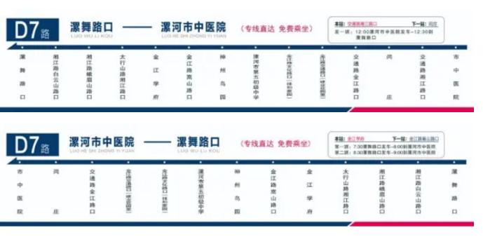 7:30漯舞路口發(fā)車—8:00到達(dá)漯河市中醫(yī)院院內(nèi)