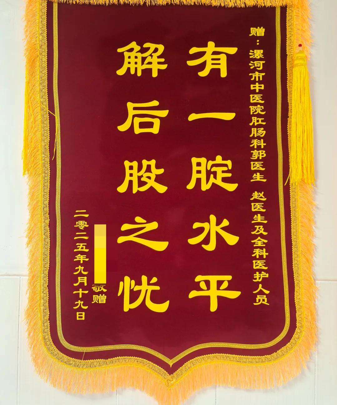 這一面面錦旗是患者的感謝,更是醫(yī)患同心的寫照。未來,漯河市中醫(yī)院肛腸科將帶著這份認(rèn)可持續(xù)精進(jìn),以更優(yōu)質(zhì)的服務(wù)為患者解決 “難言之隱”,守護(hù)大家的肛腸健康。(肛腸科 高志慧 趙蕊)